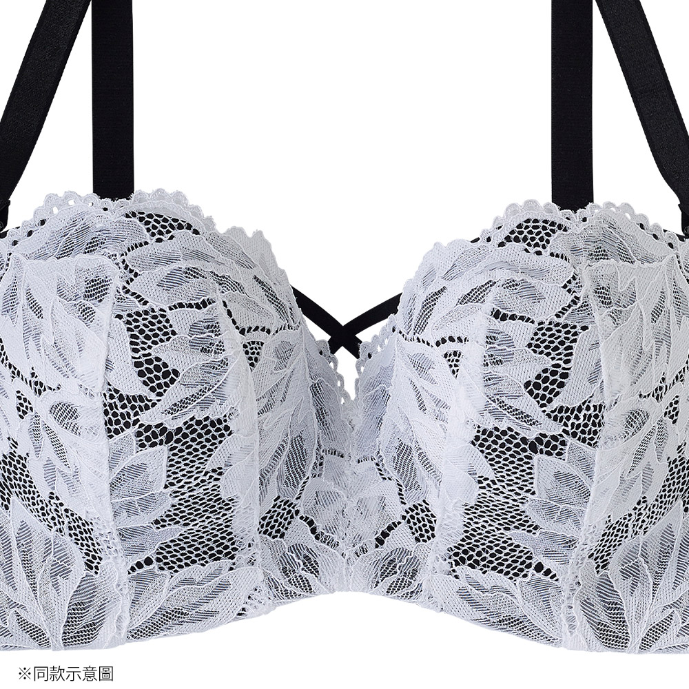 肩帶可拆式1/2罩杯超盛內衣(R)新推出性感蕾絲設計!蕾絲包覆罩杯,充滿性感女人味的設計。本商品的後背帶下多了一條輔助背帶,能減輕空隙及位移的情形。高脇邊壓條幫助鎖住集中的贅肉,使腋下線條俐落清爽。立體罩杯幫助托高胸部,讓妳瞬間擁有驚人爆乳美胸。寬版四排背扣提升穩定度,防止胸部溢流,維持身材不走山。1/2罩杯樣式適合搭配低胸上衣。夏日時尚必備超實用無肩帶內衣!有性感的黑色,及女人味十足的白色二色可選。
