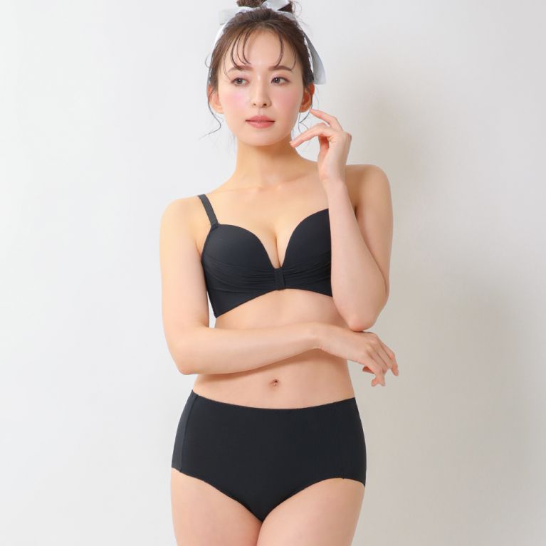 塑造漂亮胸形曲線的無痕樣式無鋼圈內衣。薄型內藏襯墊貼合胸部,展現自然豐盈弧度。罩杯表面無裝飾與縫線的無痕設計最安心;少了鋼圈產生的不適感,給您快活舒適的日常。往前中心打皺褶的蝴蝶結風設計是一亮點。帶點甜美氣息的成熟可愛內衣。