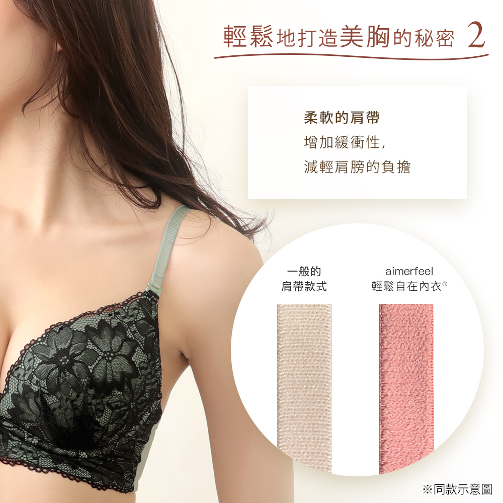 實現你輕鬆擁有豐盈美胸願望的「aimerfeel輕鬆自在樂活內衣(R)極」新推出無痕羅紋款!Q彈伸縮性佳的材質溫和服貼肌膚,加上軟鋼圈及柔軟的罩杯給您舒適自在的體驗,輕鬆打造自然豐盈效果。無襯墊呈現自然美形;搭配襯墊擁有立體豐盈效果。顏色除了基本的黑色以外還有紅色系的暗粉紅、粉膚色等。