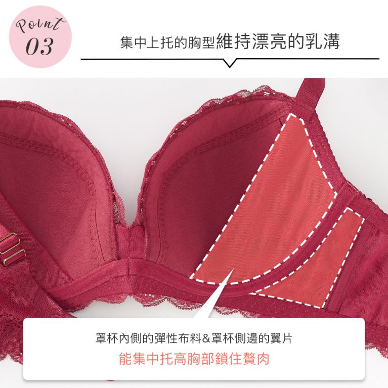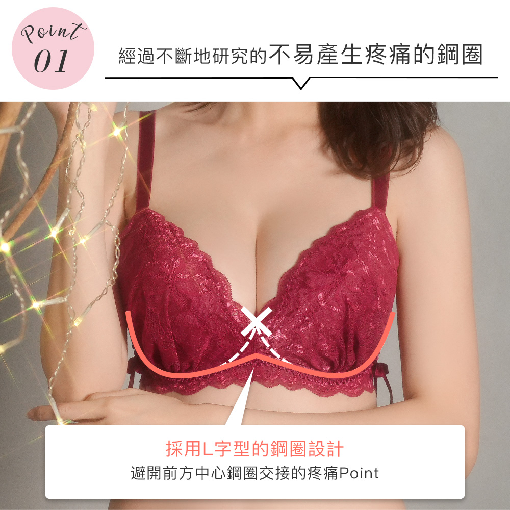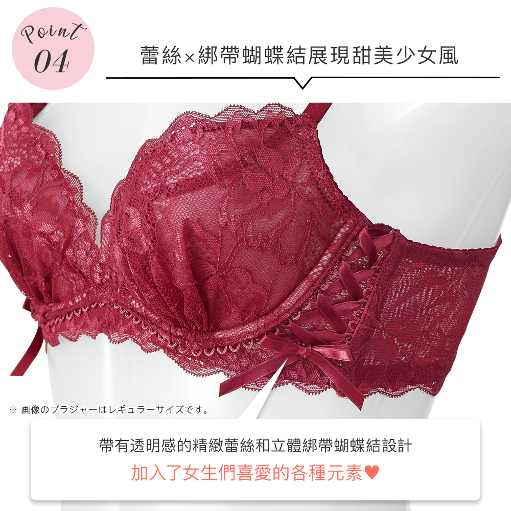 立體緞帶編織設計可愛FGH罩杯高脇邊內衣。搭配精緻蕾絲增添甜美少女感。更少不了減輕疼痛不適的功能設計。採用低脊心的L型鋼圈避免接觸容易造成疼痛的位置。高脇邊設計能集中鎖住多餘贅肉,並使用彈性蕾絲與寬版背帶,提升集中效果讓胸部更漂亮豐盈。加寬肩帶以減輕胸部重量對肩膀的壓迫不適。並在罩杯內裡加上強力網布,以達到更好的拉提效果。華麗的設計讓您不只平常日可以穿,更適合約會以及特別的日子。