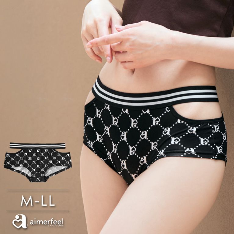 把aimerfeel的品牌LOGO化作時尚文織字母設計的酷帥低腰內褲。側邊大膽挖空設計更加襯托女性魅力。富彈性柔軟材質舒適服貼肌膚。腰帶在腰骨位置的低腰樣式適合搭配低腰褲。更可藉由調整兩側腰帶高度,使其看起來像V字的穿搭方式更添時尚風采。另有同款男用平口褲可以搭配情侶裝,是給家人、情人及朋友送禮的好選擇,輕鬆享受同款搭配的樂趣。