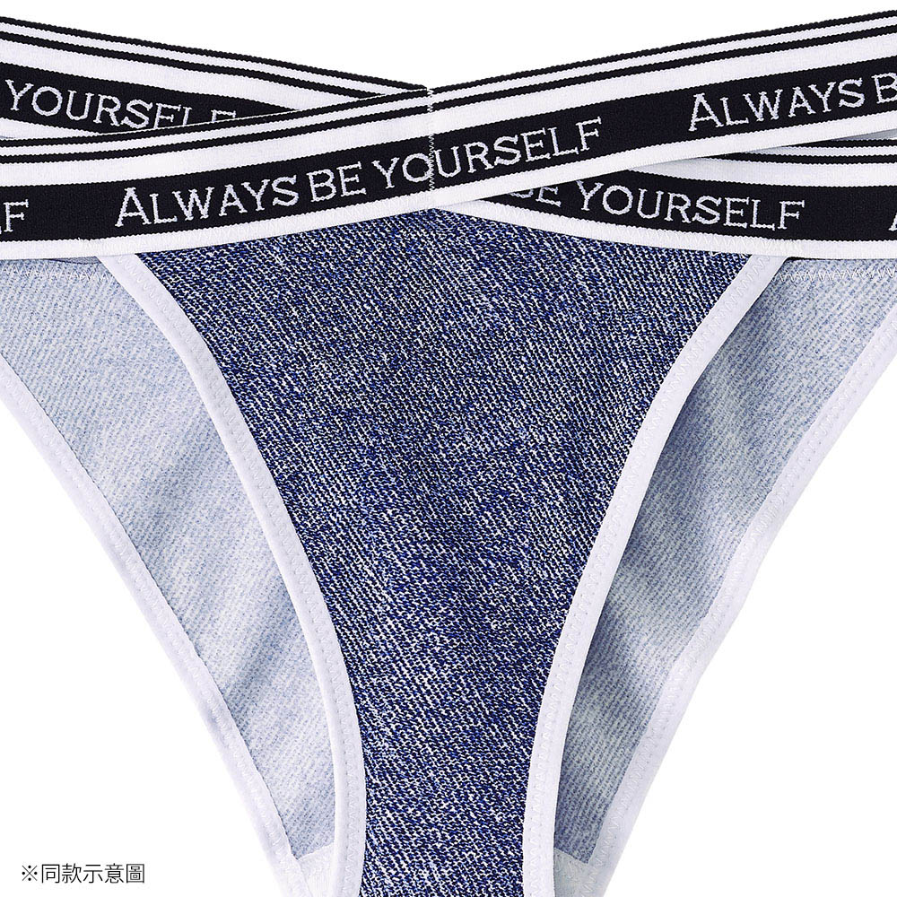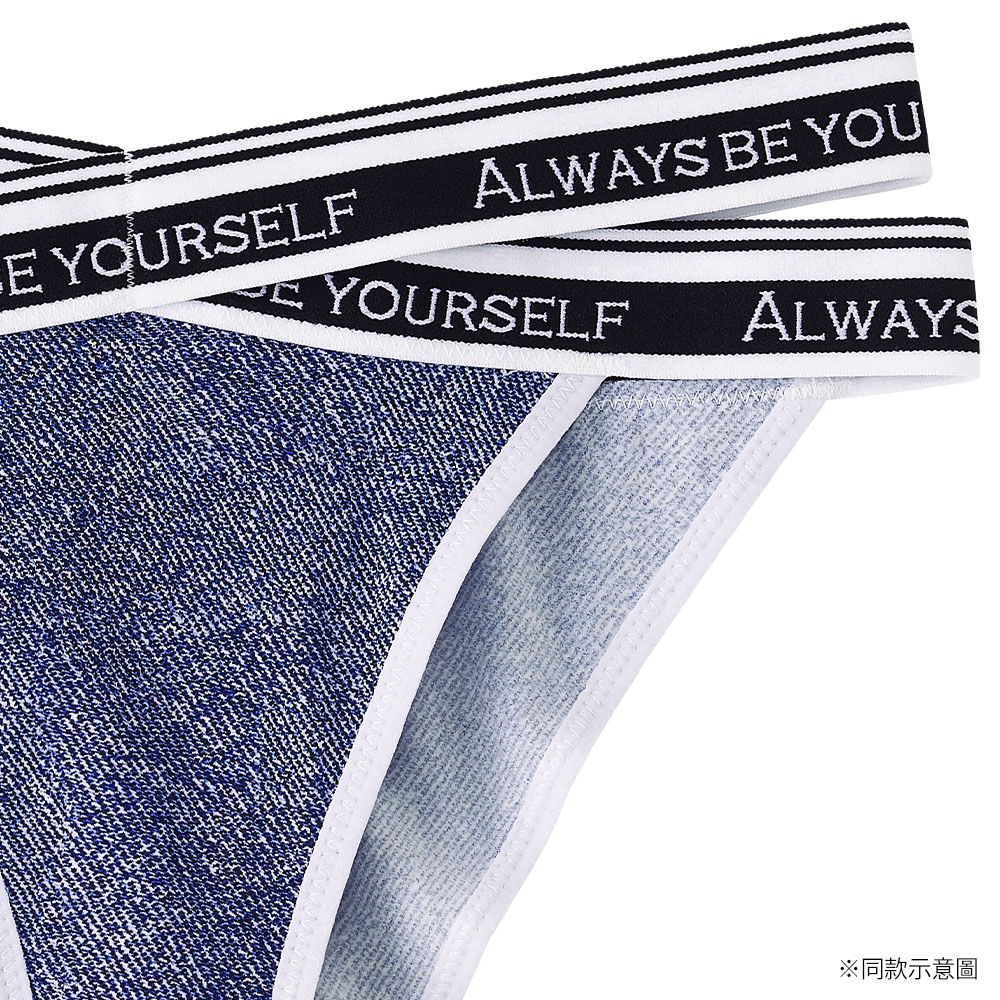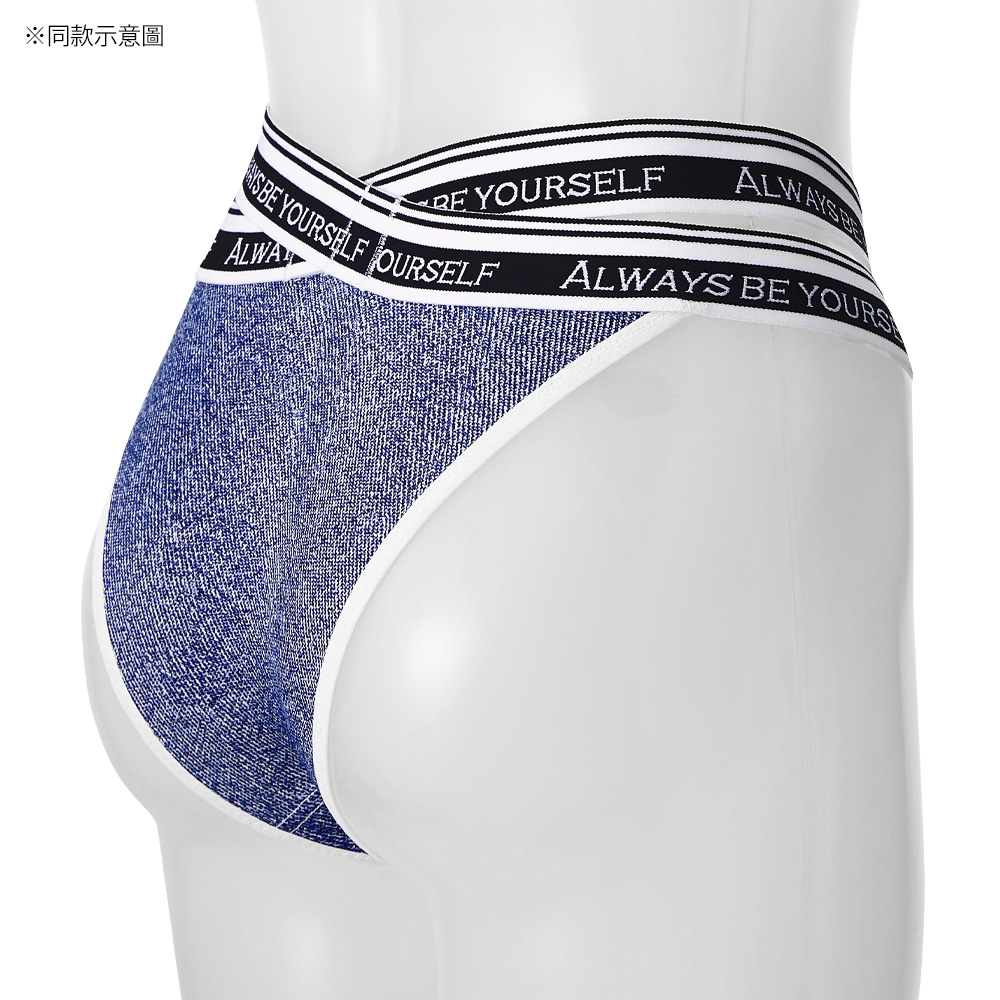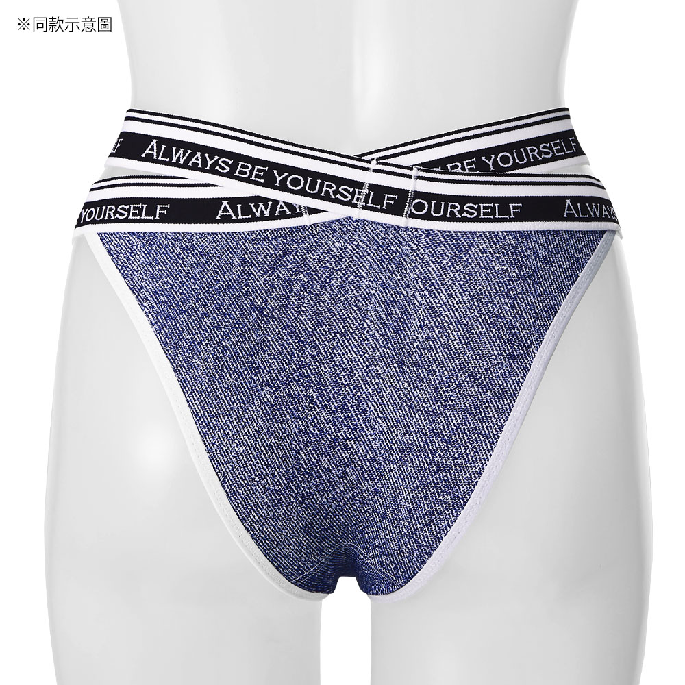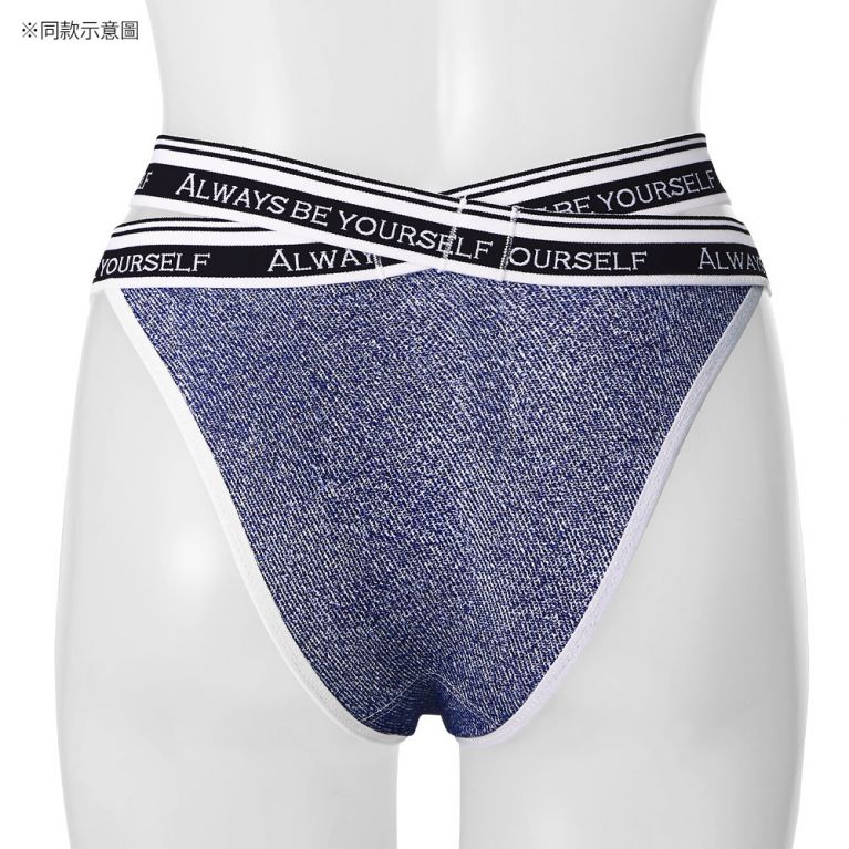腰帶雙線交叉設計大膽展露肌膚把時尚穿上身的丹寧內褲。休閒不失性感的設計讓您心情HIGH翻天。半包臀剪裁能修飾臀型使臀部看起來更渾圓,是同時擁有三角內褲的包覆安心感及丁字褲無痕優點的設計。另有同款男用平口褲可以搭配情侶裝,是給家人、情人及朋友送禮的好選擇。