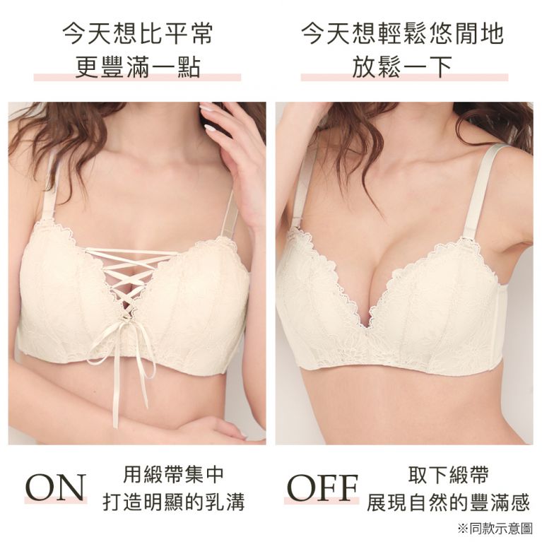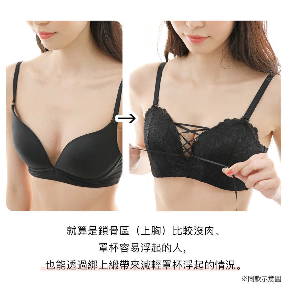 ・透過罩杯中間的緞帶鬆緊可調整喜歡的深溝效果