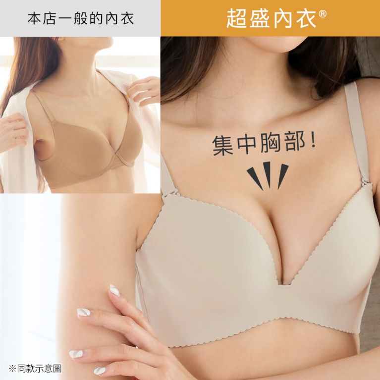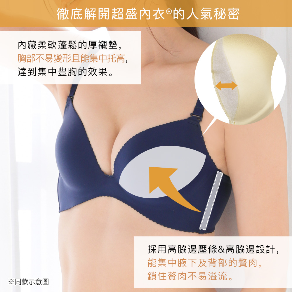 ・高脇邊設計與下厚罩杯幫助集中托高胸部以達到深邃美溝效果