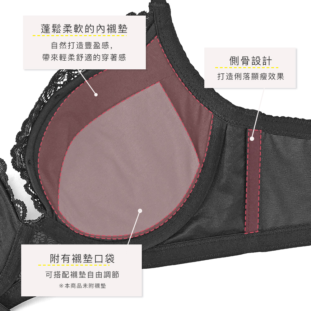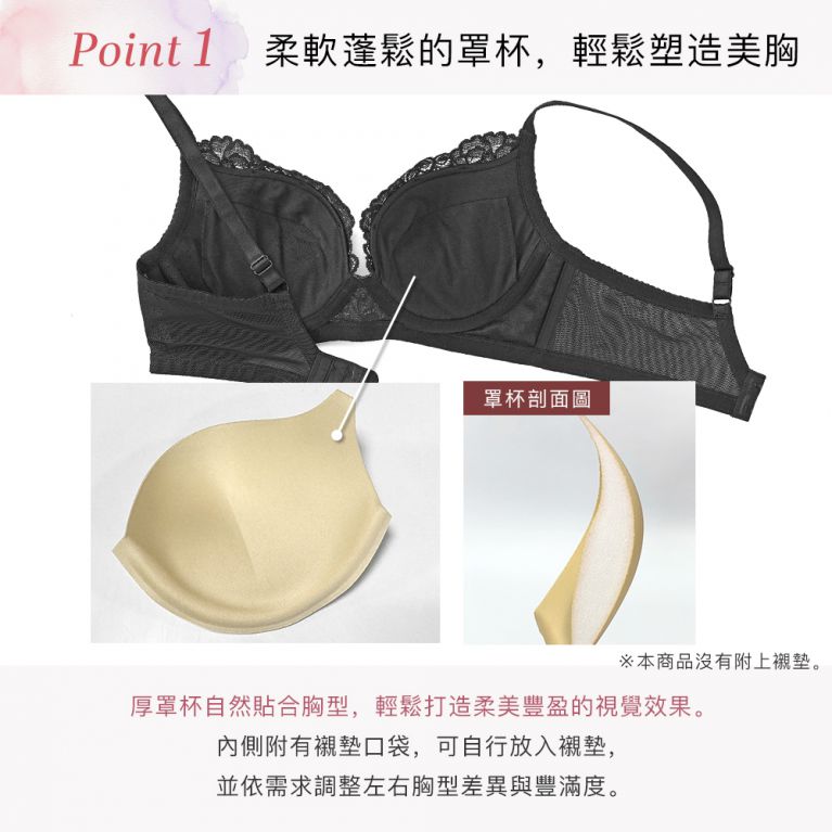 ・柔軟下厚罩杯與肌膚融為一體,打造完美胸型曲線