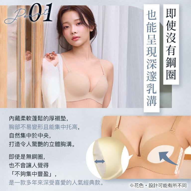 ・下厚襯墊幫助集中托高胸部,維持深邃美溝