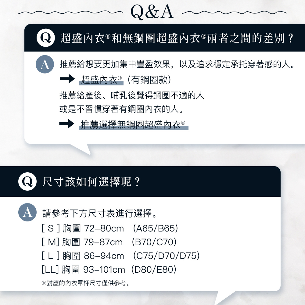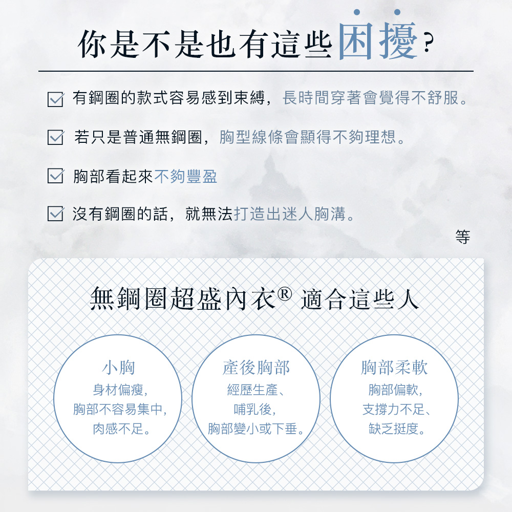 ・較一般「無鋼圈超盛內衣(R)」更不易外擴,集中效果更佳