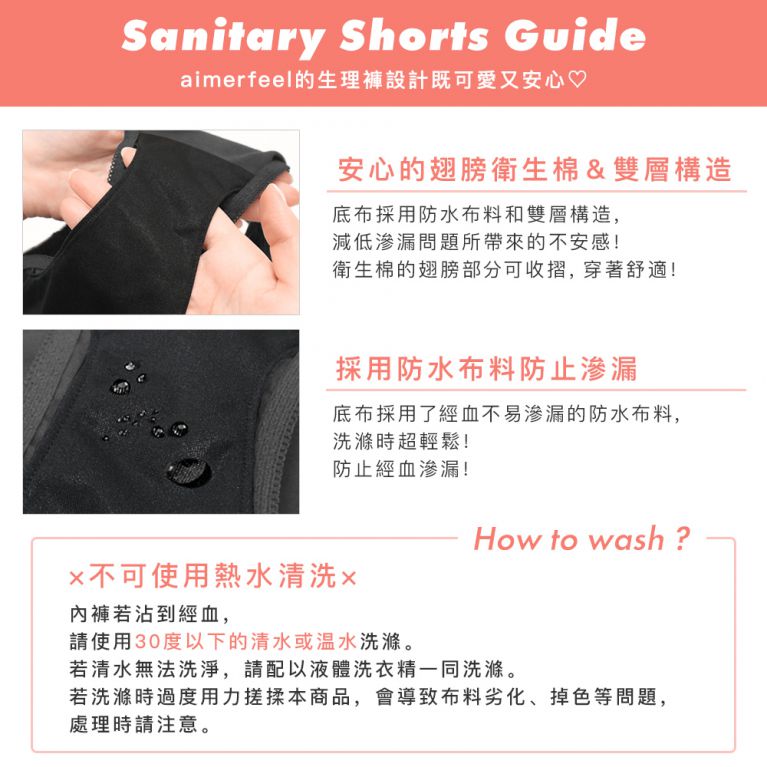 ・衛生棉的蝶翼可反折收入夾層,不易位移俐落清爽