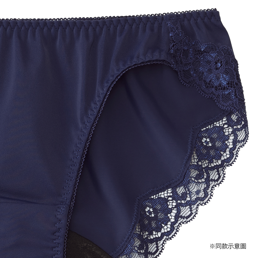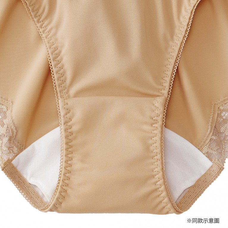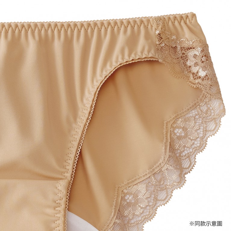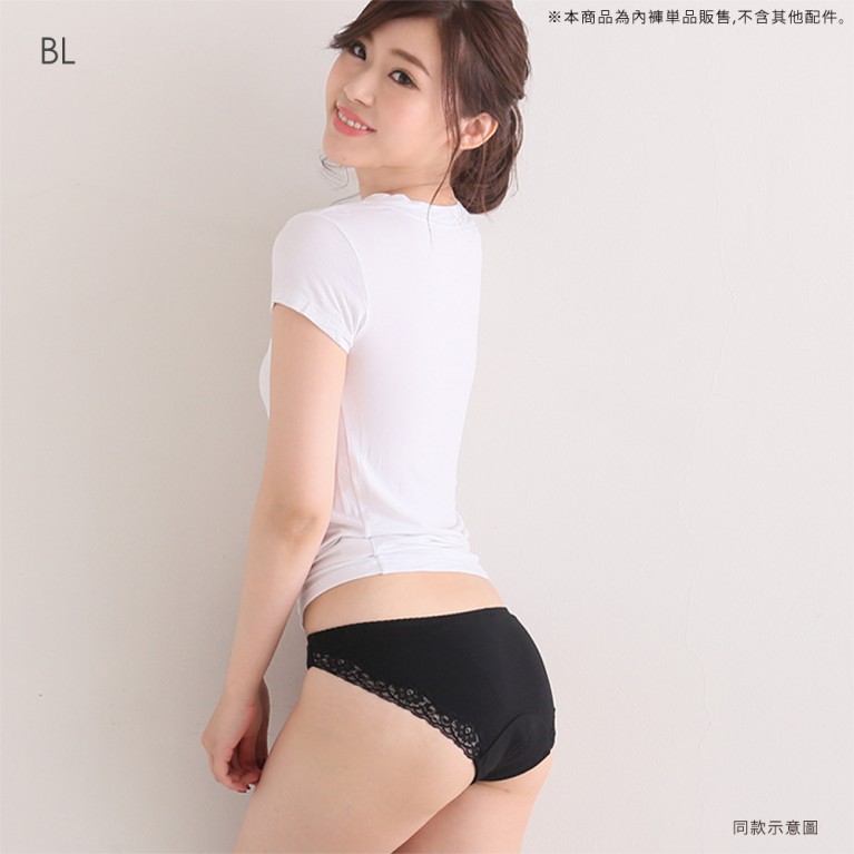 邊緣以蕾絲包覆,內褲線條不外露!平面光滑的質感,給你絕佳舒適穿著感、採用彈性布料與蕾絲、生理期依然輕鬆自在、